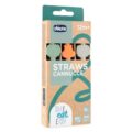 – Balenie obsahuje 6 ks silikónových slamiek v troch farebných prevedeniach, kefku na čistenie vnútornej strany slamky a vrecúško na uschovanie slamiek