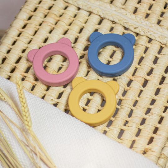 PETITE&MARS Hryzačka silikónová s hrkálkou Beary Petrol Blue 0m+
