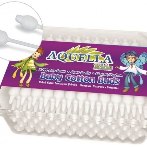 Aquella Vatové bezpečnostné tyčinky, 60 ks Detské vatové bezpečnostné tyčinky zabezpečujú hygienu uší vášho dieťatka a svojim bezpečným dizajnom vám umožnia čistiť, tak, aby nedošlo ku poškodeniu zvukovodu