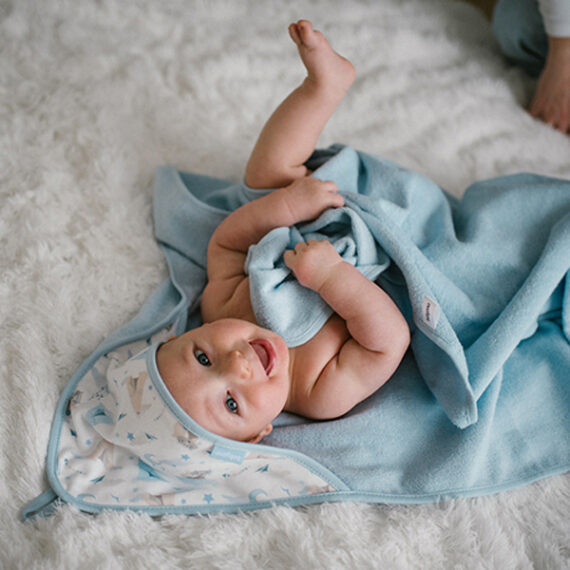 BABYONO Osuška s kapucňou froté modrá 100×100 cm