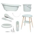 Sada obsahuje vaničku Sense a luxusný stojan z lakovaného buku, kýblik na plienky,sadu na manikúru, hrebeň a kefu, teplomer do vaničky a vypúšťaciu hadicu. Skrátka vaše kompletné vybavenie na starostlivosť a kúpanie!