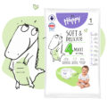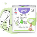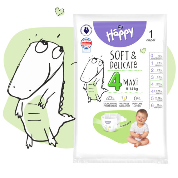 Detské plienky Happy Soft & Delicate Maxi (4) sú odporúčané pre novorodencov s hmotnosťou 8-14 kg. Sú vyrobené z najkvalitnejších materiálov, dokonale sa prispôsobia telu dieťatka a poskytujú príjemný pocit sucha. Sú navrhnuté tak, aby vyhovovali potrebám tej najcitlivejšej pokožky – neobsahujú žiadne alergény a minimalizujú riziko vzniku zaparenín.