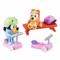 Set obsahuje detaily a prvky, ktoré verne zachytávajú štýl a atmosféru z obľúbeného seriálu. Bluey a Bingo sú oblečené do špeciálnych odevov a sú pripravené na dobrodružstvo na skútroch.
