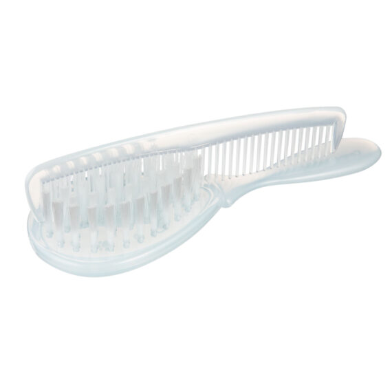 Bezpečný a jemný detský kefa na vlasy z umelých štetín. Kefa jemne masíruje hlavičku a neelektrizuje vlasy. Dieťa sa vďaka atraktívnemu tvaru a farbám rado češe samo.