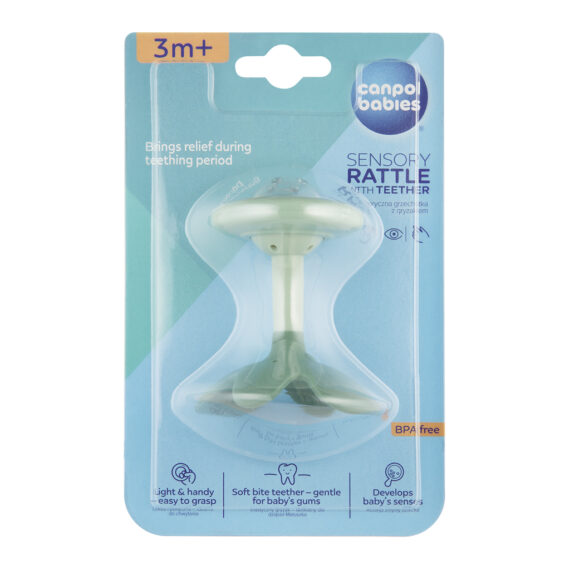 CANPOL BABIES Hrkálka senzorická s hryzačkou zelená