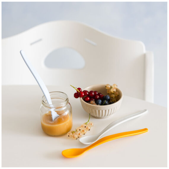 – Okrúhle zakončenie – uľahčuje naberanie pokrmu aj z dna alebo okrajov poháre/taniere a je šetrné k citlivým detským ďasnám.