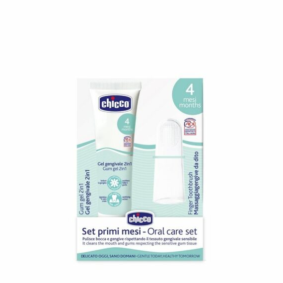 Štartovacia súprava obsahujúca zubný gél a silikónovú kefku na prst je vynikajúca na to, aby sa dieťaťu uľavilo – zmierňuje bolesť a jemne čistí ďasná. Starostlivosť o ústnu hygienu sa musí začať čo najskôr – skôr, ako sa objavia prvé mliečne zuby. Použitie kefky na prst spolu s gélom na zuby a ďasná nielen zabraňuje rastu baktérií, ale tiež podporuje návyk, ako sa pravidelne starať o ústa. Kefka na prst Chicco vďaka jemným výčnelkom čistí a masíruje podráždené ďasná a prvé zuby.