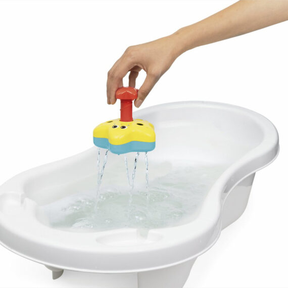 Hračka v tvare hviezdice sprevádza a zabaví dieťatko počas kúpania.
