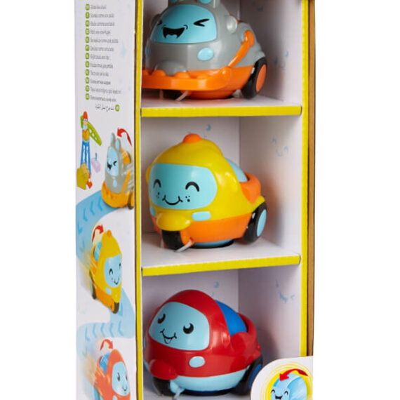 – 3 jedinečné mini vozidlá s roztomilými výrazmi a motívmi stavbárského tímu: nákladiak Quincey, dodávka Doug a zhŕňač Spencer