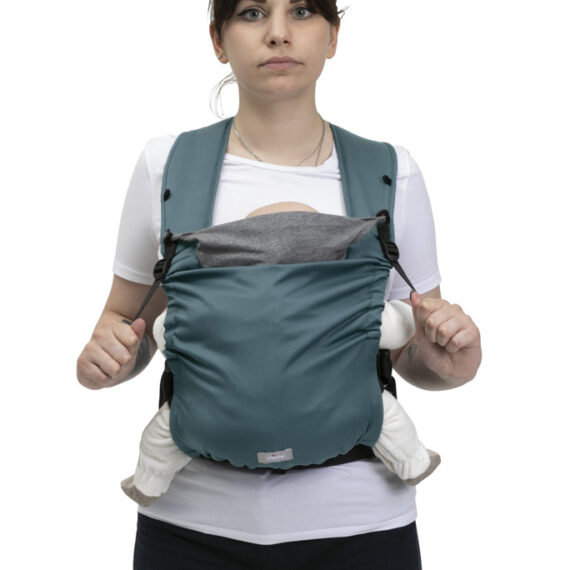 Kapucňa má dvojitú konfiguráciu: keď je spustená, poskytuje dieťaťu extra podporu krku, keď je zdvihnutá, poskytuje súkromie a ochranu pred slnkom počas spánku alebo slnečných dní.