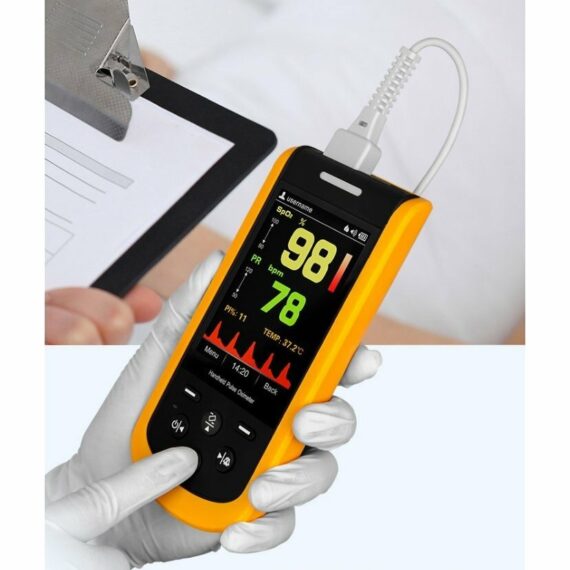 * Prevádzka na batérie a sieť. Pulzný oxymeter s nabíjacou stanicou.