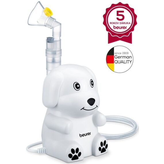 Detský inhalátor BEURER IH24 vhodný pre deti, je dokonalým spoločníkom pri astme, prechladnutí a ochoreniach dýchacích ciest. Mäkká silikónová maska je ideálna pre citlivú detskú pokožku. Detský inhalátor s kompresorovou technológiou stlačeného vzduchu v roztomilom psom dizajne si deti rýchlo zamilujú.Charakteristika a technické údaje: Profesionálny respiračný terapeut na štyroch labkách Cielená liečba horných a dolných dýchacích ciest Osvedčené pri liečbe akútnych a chronických ochorení ako je prechladnutie, astma a bronchitída Technológia kompresora- stlačeného vzduchu vytvára najjemnejšie častice, ktoré transportujú aktívne zložky hlboko do pľúc v priebehu niekoľkých sekúnd Účinná inhalácia už od 6. mesiaca veku dieťaťa Vrátane mäkkej silikónovej masky pre citlivú detskú pokožku Veľkosť častíc (MMAD): 3,07 um Vysoký nebulizačný výkon (cca 0,35 ml/min.) – krátky čas inhalácie Súprava rozprašovača: – Náustok – Detská a dojčenská maska vyrobená zo silikónu – Kolienko – Nebulizér – 10 filtrov – Hadica a úložný vak Pracovný tlak: cca 0,5 až 1,45 bar Plniaci objem atomizéra: max. 8 ml, min. 2 ml Hlučnosť: cca 52 dBA Sieťová prevádzka: 230 V, 50 Hz Hmotnosť produktu: cca 1,5 kg Rozmery produktu: 150 x 210 x 150 mm CE: áno Záruka: 5 rokov Zdravotnícka pomôckaKolekcia starostlivosti o dieťa nemeckého špecialistu Beurer obsahuje starostlivo prispôsobenú škálu produktov, ktoré spĺňajú všetky potreby detí a rodičov: od detských monitorov, klinických teplomerov, detských váh a odsávačiek mlieka až po ohrievače, sterilizátory fliaš či inhalátory. Starostlivosť o dieťa Beurerom, to je len to najlepšie pre našich malých! Inhalátory sú zdravotnícke pomôcky, ktoré umožňujú rozptyľovanie vodnej pary či ukladanie rozprašovacích liekov v hlbších častiach dýchacieho systému, ako je napríklad pľúcne tkanivo. Vyskúšajte to najjemnejšie ošetrenie dýchacích ciest pomocou inhalátorov Beurer.