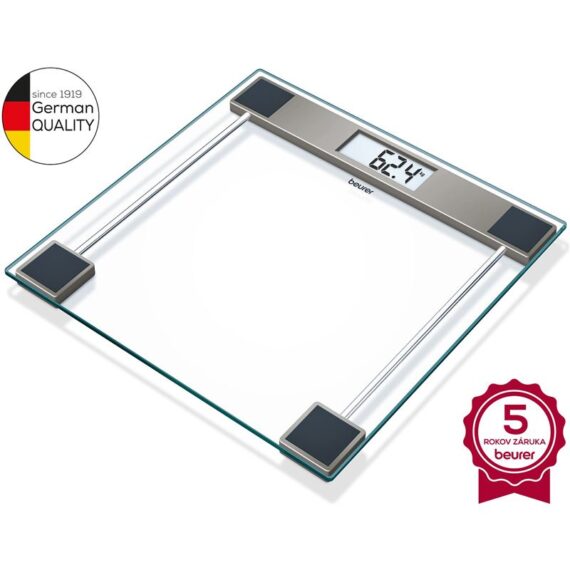 Spoľahnite sa na kvalitu a štýl s digitálnou váhou BEURER GS11, ktorá vyniká priestrannou vážiacou plochou (30 × 30 cm) z bezpečnostného skla a prehľadným displejom s veľkosťou číslic až 25 mm.S maximálnou nosnosťou 150 kg a presnosťou 100 g vám poskytne presné výsledky váženia v jednotkách kg, lb alebo st. Technológia rýchleho štartu, automatické vypnutie a indikácia preťaženia zaručujú pohodlné a bezpečné používanie.Kompaktné rozmery, moderný vzhľad a batéria v balení robia z váhy BEURER GS11 ideálneho spoločníka pre každodennú kontrolu vašej hmotnosti.Charakteristika a technické údaje: S veľkou platformou z bezpečnostného skla (30 x 30 cm) Ľahko čitateľné výsledky merania vďaka veľkosti číslic 25 mm Nosnosť :150 kg Presnosť: 100 g Technológia rýchleho štartu Automatické vypnutie Jednotky váženia: kg/lb/st Indikácia preťaženia Napájanie: 1 x 3 V batéria CR 2032 (súčasť balenia) Rozmery: 30 x 30 x 2,1 cm Záruka: 5 rokovOsobné digitálne váhy nemeckej značky Beurer menia sledovanie hmotnosti na skutočné potešenie. Všetky modely ponúkajú najmodernejšie technológie a sú estetickým doplnkom do kúpeľne. Sledujte svoju hmotnosť pomocou spoľahlivých váh Beurer! Model GS11 Vás určite nesklame!