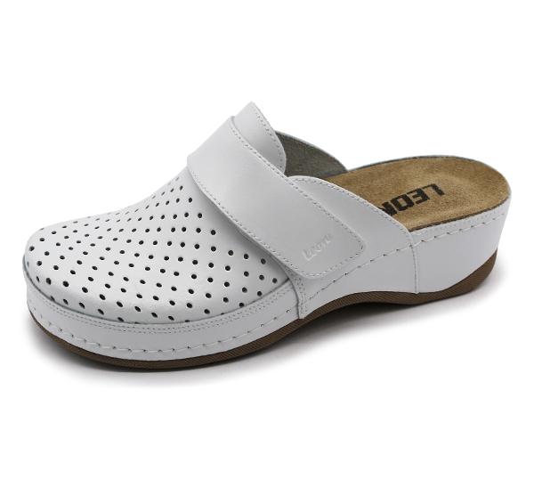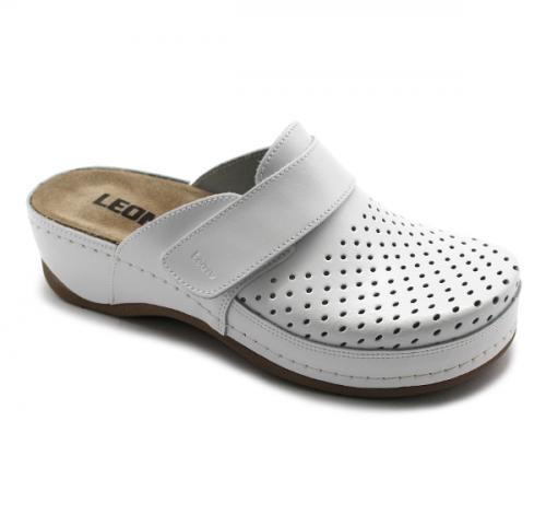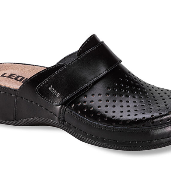 Elegantný dámsky model zdravotnej ortopedickej obuvi LEON. Šľapky sú určené na každodenné používanie ako obuv na voľný čas, na doma, na dlhé prechádzky, ako pracovná obuv, pretože noha nie je unavená ani po niekoľkých hodinách chôdze. Vhodnosť obuvi zabezpečuje plná špička.