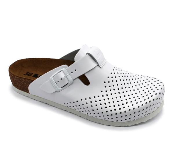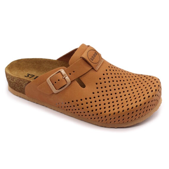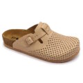 Elegantný model dámskych zdravotných celo-kožených ortopedických vsuviek s prackou značky LEON so štýlovým dizajnom. Anatomicky tvarovaná korková podošva s mäkkou semišovú stielkou a proti šmykovou penovou podrážkou. Odporúča sa pre každodenné použitie v práci, doma alebo vonku, ideálne na letné prechádzky (aj po hodinách chôdze nemáte pocit unavených nôh).