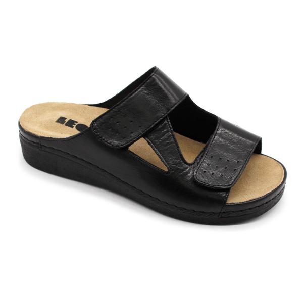 HALUXOVÁ OBUV PRE VYBOČENÉ PALCE. Dámske kožené otvorené šľapky s Anti-shock protišmykovou podošvou. Pružný dielec v oblasti palcového kĺbu vám zaručí pohodlnú chôdzu bez bolesti.