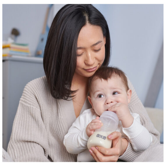 Profilovaný tvar fľaše – Uľahčuje správne držanie fľaše a podávanie pokrmu.
