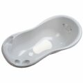 Vanička na kúpanie s vypúšťacou zátkou, protišmykovou podložkou a veselým grafickým motívom má dĺžku 100 cm. Je vyrobená z PVC, má anatomický tvar a je možné ju ľahko očistiť.