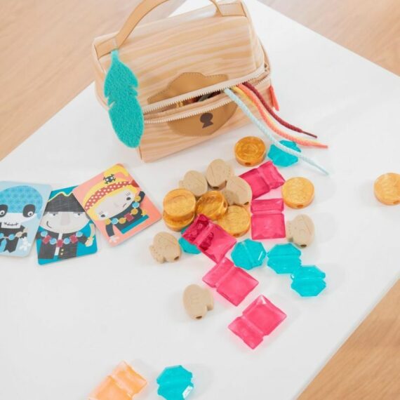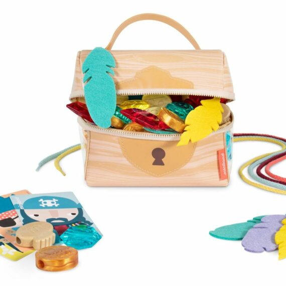 Rôzne tvary a farby určite zaujmú každé batoľa a zabezpečia tvorivú činnosť na dlhú dobu. Všetko je zabalené v šikovnej truhlici s rúčkou, pripomínajúcej poklad, ktorú si môžete vziať kamkoľvek so sebou.