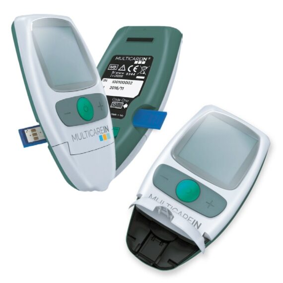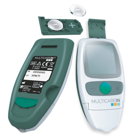 MultiCareIn BSI na meranie “glukózy, cholesterolu” “glyceridu” meraný s 1 mikrolitrom kapilárnej krvy. Zariadenie 3v1 meria koncentráciu glukózy, cholesterolu a krvného glyceridu a má jedinečné vyhadzovacie tlačidlo na bezpečné bezkontaktné odstránenie prúžkov.