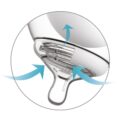 Inovatívny dizajn výrobku pripomínajúci tvar prsníka umožňuje dieťaťu držať fľašu a jesť jedlo samo oveľa rýchlejšie ako v prípade tradičných fliaš. Matka už teda nebude mať problémy s odchodom z domu a ponechaním bábätka v opatere inej osoby.