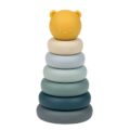 Klasická zábavná hračka stohovacia pyramída, ktorá zabaví dieťatko na dlhý čas a zároveň rozvíja jemnú motoriku a koordináciu oko-ruka. Hračka obsahuje 6 stohovateľných častí a vrchnou časťou v tvare hlavy medvedíka. Je vyrobená z vysoko kvalitného silikónu, testovaného podľa EU noriem a spĺňa všetky normy pre hračky. Stohovaciu hračku je možné použiť nielen v interiéri, ale aj vo vani a exteriéri, či už v záhrade alebo výlete pri vode. Pomáha bábätkám učiť sa farby, počítať, trénovať reakcie, logické a motorické zručnosti.