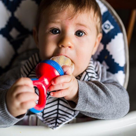 Vložte malý kúsok ovocia, zeleniny alebo keksu a nechajte dieťa spoznávať nové chute.