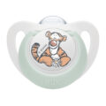 NUK Trendline cumlíky z našej kolekcie “Medvedík Pú” sú dekorované roztomilými motívmi populárnych Disneyových postavičiek Macka Pú a tigríka pre každého malého Disney fanúšika. Anatomicky tvarovaná vonkajšia časť cumlíka nespôsobuje otlačeniny, a preto je cumlík ideálny pre pohodlné zaspávanie na boku aj na bruchu. Priehľadný silikón sa ľahko čistí, je chuťovo neutrálny, bez zápachu a je odolný voči vysokým teplotám. Neobsahuje škodlivé látky, je odolný pri vyváraní a má hladký povrch.