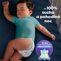 Vedeli ste, že sa vaše dieťatko pri spánku pohybuje až dvakrát viac ako dospelí ľudia? Jeho noc je plná aktivít. To môže viesť k pretečeniu plienky, alebo k tomu, že jeho pokojný spánok bude rušiť mokrá objemná plienka. Preto majú plienky Pampers jedinečnú ďalšiu absorpčnú vrstvu “sleep”, ktorá pomáha rýchlo absorbovať tekutinu. Bez ohľadu na to, ako sa dieťatko pohybuje alebo v akej polohe spí, bude vďaka plienkam Pampers v suchu po celú noc. Teraz vo vylepšenom balení.