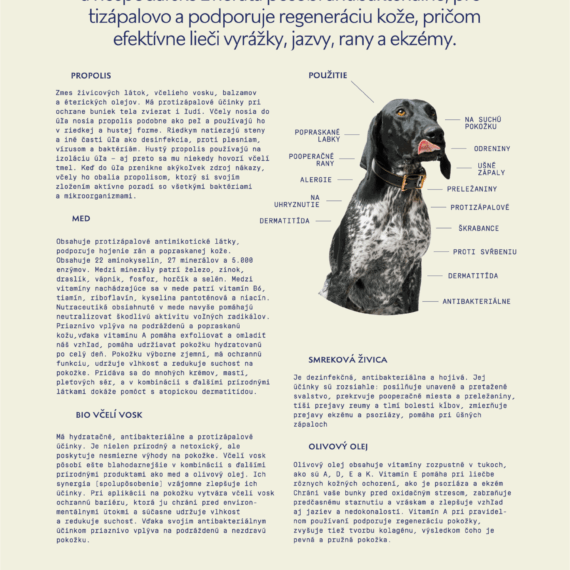 Bio Liečivý Balzam pre Zvieratá je jedinečným produktom, ktorý svojou silnou hydratačnou a liečivou schopnosťou pôsobí ako zázrak na pokožku vašich miláčikov.