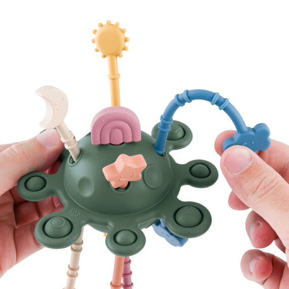 Všestranná senzorická hračka v tvare planéty Petite&Mars nielen stimuluje zmysly, ale podporuje aj rozvoj malých ručičiek. Táto nezvyčajná hračka môže slúžiť ako hryzátko aj ako nástroj na rozvoj manuálnych zručností. Obsahuje mnoho prvkov na skúmanie: tlačidlá na stláčanie, silikónové šnúrky s rôznym stupňom obtiažnosti pri ich ťahaní a zaujímavé tvary súvisiace s atmosférickými javmi, čo zaručuje dlhotrvajúcu a tvorivú zábavu.