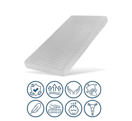 Odporúčame dokúpiť tiež priedušný, nepremokavý chránič matraca Petite&Mars Aero, ktorý zabráni preniknutiu vlhkosti a baktériám do matraca pri pretečenej plienočke či nehodách dieťatka.