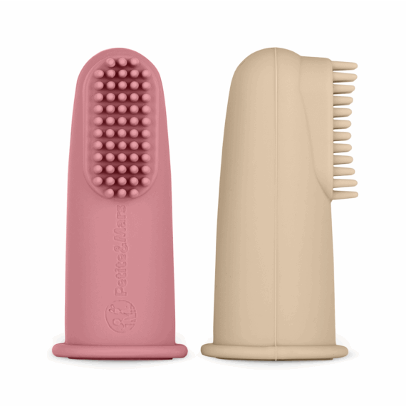 PETITE&MARS Sada silikónových zubných kefiek na prst Rose&Sand 2 ks 0m+