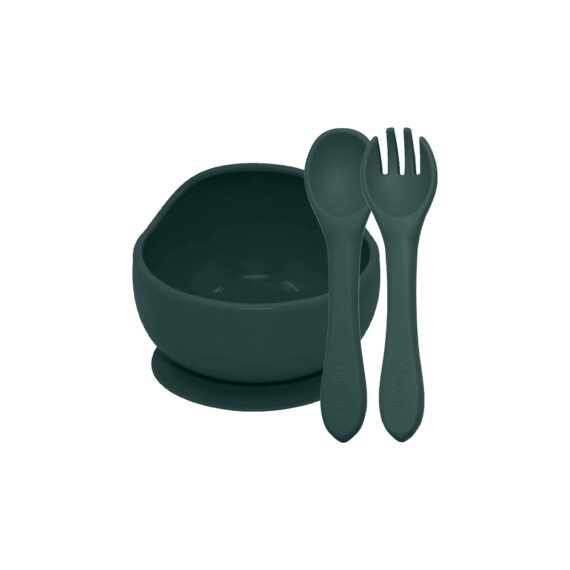 PETITE&MARS Set jedálenský silikónový TAKE&MATCH 2 ks miska + príbor Misty Green 6m+