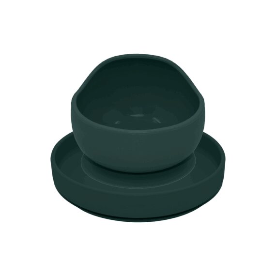 PETITE&MARS Set jedálenský silikónový TAKE&MATCH 2 ks tanier + miska Misty Green 6m+