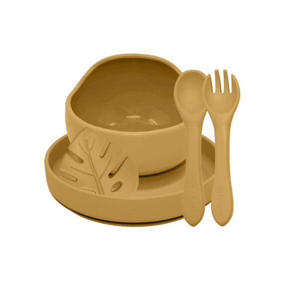 PETITE&MARS Set jedálenský silikónový TAKE&MATCH 4 ks Intense Ochre 6m+