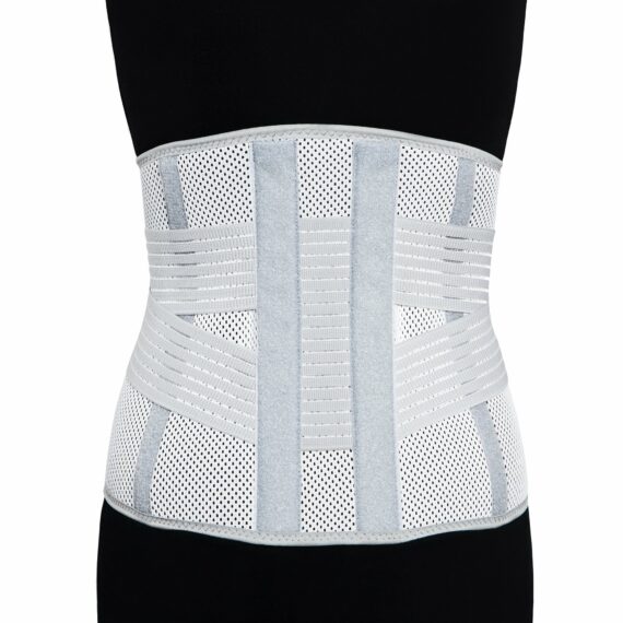 -dve polotuhé výstuhy z plastu, dve kostice v chrbtovej časti a dve kostice v brušnej časti (umiestnené na sťahovacích popruhoch) zabezpečujú vonkajšiu stabilizáciu lumbosakrálnej časti,