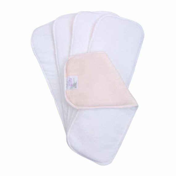 ‘-Vkladacie plienky majú 4 vrstvové kombinované jadro Mikrovlákno / Bamboo (3 mikrovlákno + 1 bambus)
