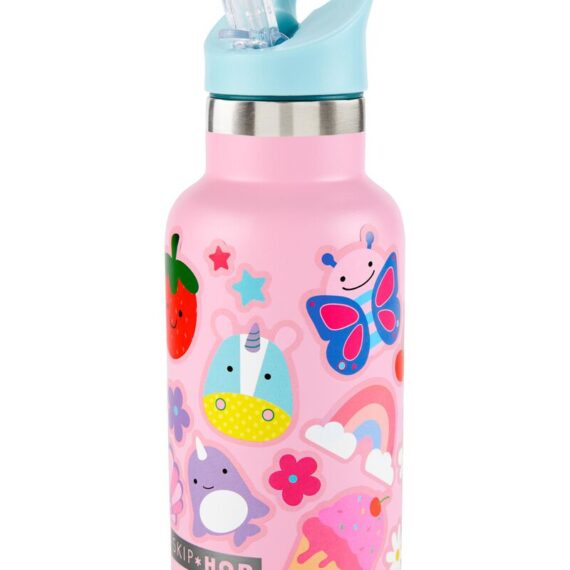 SKIP HOP Fľaša s nálepkami so slamkovým náustkom nerezová ružová 380 ml, 4r+