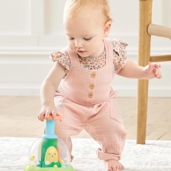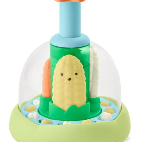 Čo to puká? Zmyslová popcornová zábava pre dieťa! Svieža zmena klasických hračiek pre bábätká, stačí stlačiť priateľské slniečko v hornej časti a sledovať, ako sa kukurica točí, hojdá a puká. Dieťatko si zamiluje učenie o príčine a následku, keď sa kukuričné klasy hojdajú hore a dole, zatiaľ čo popcorn poskakuje.