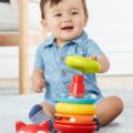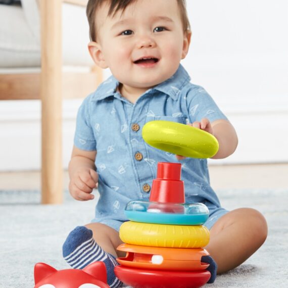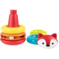 Stohujte, trieďte, hrkajte a kotúľajte krúžky s hračkou na stohovanie pre bábätko. Klasická zábavná hračka stohovacia pyramída, ktorá zabaví dieťatko na dlhý čas a zároveň rozvíja jemnú motoriku a koordináciu oko-ruka. Dieťatko bude rado chytať a ukladať štyri farebné krúžky a vrchnú časť v tvare hlavy líšky na zaoblenú základňu. Hravý spôsob, ako podporiť jemné motorické zručnosti, koordináciu ruka-oko a ešte viac sa učiť a rozvíjať zábavu. Pomáha bábätkám učiť sa farby, počítať, trénovať reakcie, logické a motorické zručnosti.