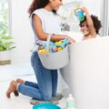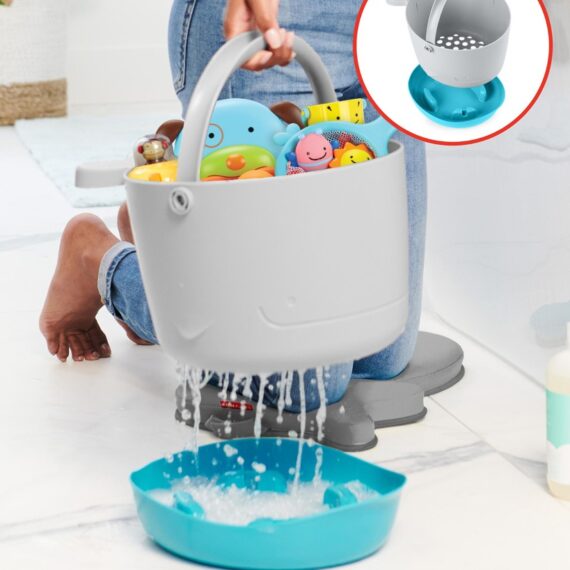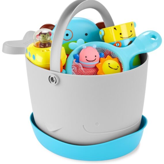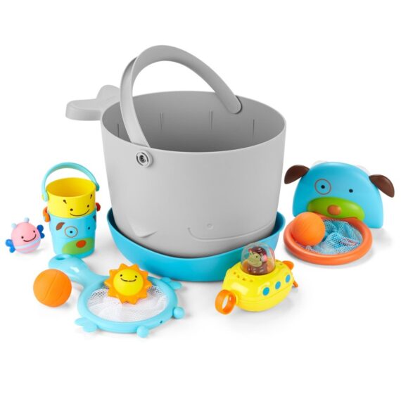 Súpravu hračiek do kúpeľa s vedierkom (v nádhernom zvieracom dizajne) si rodičia aj deti zamilujú. Vďaka veľkým odtokovým otvorom a samostatnej stojatej základni na zachytávanie prebytočnej vody je sušenie a skladovanie hračiek bezproblémové.