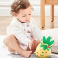 Naša sladká hrkálka ananás – pre malé rúčky, ktoré ju ľahko uchopia, kotúľajú a trasú s ňou. Ponúka multisenzorickú hru a povrch vhodný pri zúbkov. Ľahko uchopiteľné otvory s pogumovanými listami, farebnými hrkajúcimi korálkami a ďalšími prvkami pomáhajú malým rúčkam rozvíjať zručnosť a zároveň podporujú kotúľanie, trasenie a hádzanie.
