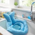 Podporná podložka pre prvé kúpanie pre novorodencov s mäkkým froté povrchom a polstrovanou podpierkou pod hlavičku.