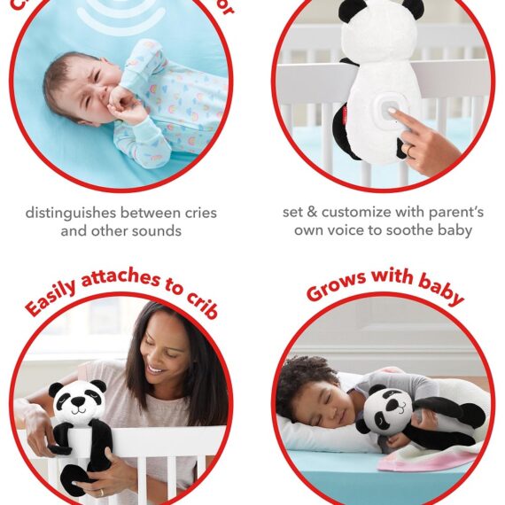 Inteligentný senzor plaču v podobe pandy upokojí dieťatko sladkými piesňami, zvukmi prírody a nahratým hlasom – dokonca aj uprostred noci! Tento plyšový priateľ automaticky reaguje na plač a krik dieťatka, aby sa upokojilo, čím sa bábätko a aj rodičia v noci lepšie vyspia. Jednoducho ho pripojte k postieľke. Prehráva 3 uspávanky a 3 upokojujúce zvuky. Umožňuje rodičom nahrať hlasový záznam po dobu 10 sekúnd.