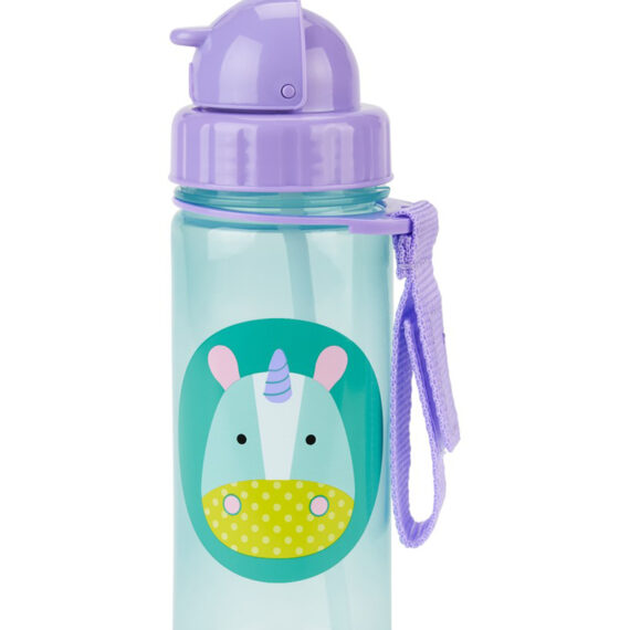 Krásna a praktická fľaštička z kolekcie ZOO, so slamkou, zatváracím viečkom, praktickým pásikom na suchý zips.