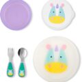 – 5-dielny set zahŕňa: protišmykový tanier, misku s vrchnákom, vidličku a lyžičku.