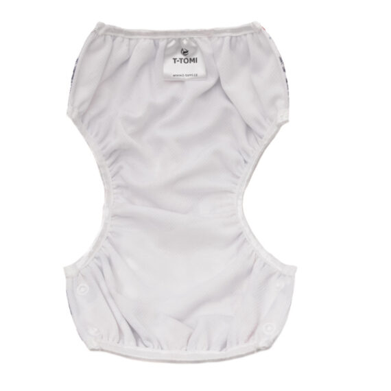 Plienkové plavky T-TOMI v modernom nadčasovom dizajne sú určené pre plávanie bábätiek od 5 do 12 kg. Tieto plavky sú vhodné ako pre novorodencov tak aj pre batoľatá a to vďaka jednoduchému systému patentiek, pomocou ktorých sa požadovaná veľkosť ľahko nastavuje. Vnútorná strana plienkových plaviek je vybavená praktickou sieťkou, ktorá zachytí prípadné “nehody” bábätka vo vode. Veľkou výhodou týchto plienkových plaviek T-TOMI je ich ekonomická stránka oproti jednorazovým plienkovým plavkám.