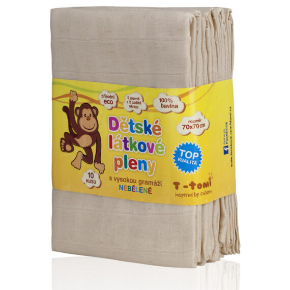 Nebielené látkové plienky T-TOMI z vysokogramážnej čistej bavlny sú vyrobené klasickou technológiou tkania v dutinnej väzbe, čo zaručuje zvýšenú savosť a mäkkosť našich látkových plienok. Aj pri každodennom používaní si naše plienky stále zachovávajú svoj tvar a to vďaka vysokej kvalite spracovania.