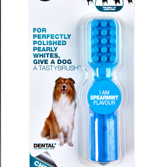 Pre dokonalé zuby! Nylonová žuvačka v tvare kefky je vyrobená zo 100% nylonu a zaručene vydrží. Je vhodná pre malé i veľké plemená psov. Uspokojuje prirodzenú potrebu žuť a hrať sa. Kefka je naplnená jedinečnou príchuťou. Táto príchuť vydrží po celú dobu životnosti kefky. S každým zahryznutím sa do kefky sa dasná a zuby vášho psa stávajú silnejšími a zdravšími, čo ho chráni pred rôznymi infekciami. Zároveň svieža mätová príchuť pomáha osviežiť psí dych.